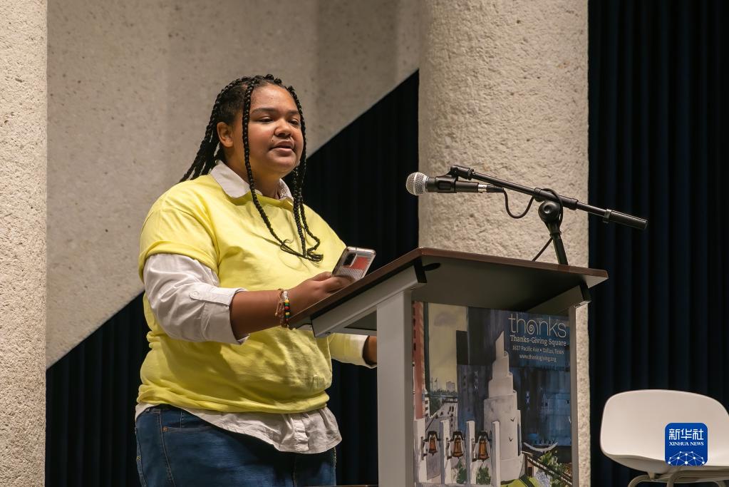8月14日,在美国得克萨斯州达拉斯市举行的世界“慰安妇”纪念日活动上,一名高中生进行诗朗诵。新华社发(金新 摄)