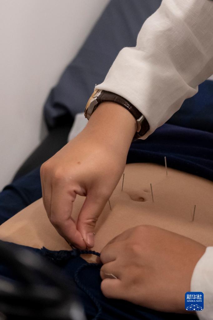 8月11日,在马来西亚吉隆坡,中医师阿米拉给患者针灸。
