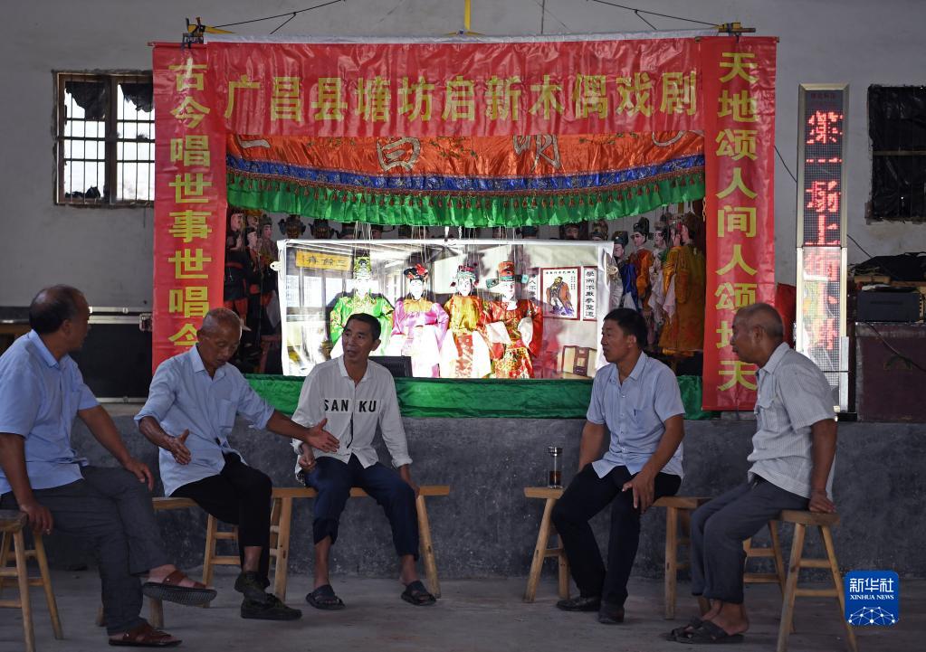 5平方米的戏台上,启新木偶剧团的演员提着木偶又说又唱,台下观众连声叫好。在江西省广昌县塘坊镇,这支由当地农民艺人组成的草根木偶剧团长年活跃于赣闽交界山区。他们忙时下田,闲时登台,为农村群众送去欢声笑语。