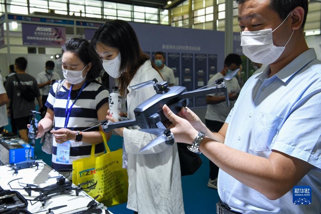 8月16日,观众在第十届中国电子信息博览会上了解一款无人机产品。