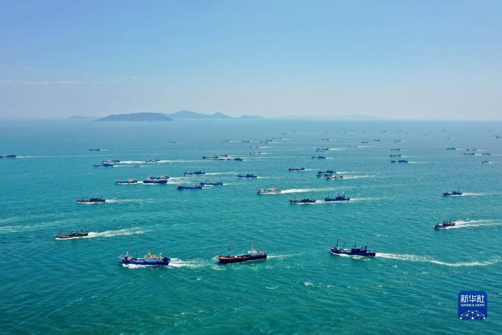 当日12时,福建省部分海域(北纬26度30分以南的福建海域)结束为期三个半月的伏季休渔期,渔民开始出海作业。在福建省福州市连江县海域,近千艘渔轮分别从黄岐、苔菉两个中心渔港驶向东海。