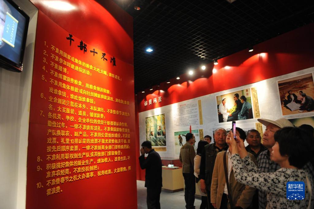 参观者在河南省兰考县焦裕禄同志纪念馆内观看焦裕禄起草的“干部十不准”展板(2014年5月5日摄)。新华社记者 朱祥 摄