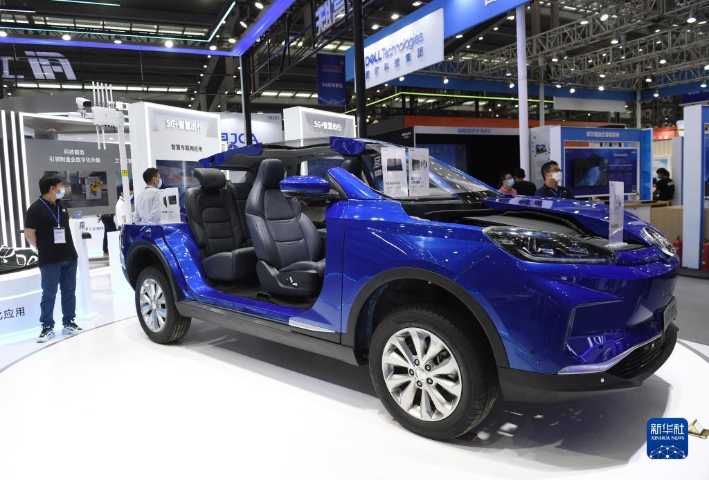 8月16日在第十届中国电子信息博览会工业富联展台拍摄的汽车智能座舱。