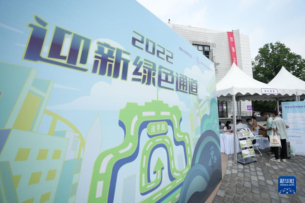 8月17日,在清华大学迎新点设立的迎新“绿色通道”处,学校工作人员为有需要的新生办理无息临时借款。