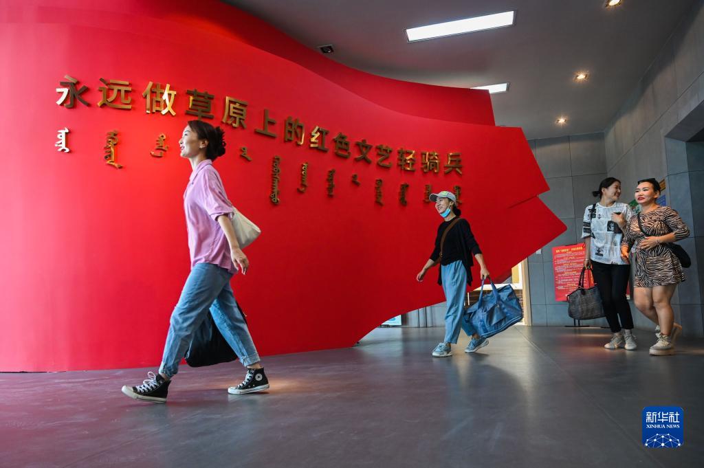 8月17日,苏尼特右旗乌兰牧骑队员们手提行李准备出发前往牧区。