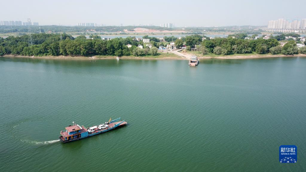 8月17日,村民搭乘轮渡前往兴马洲(无人机照片)。