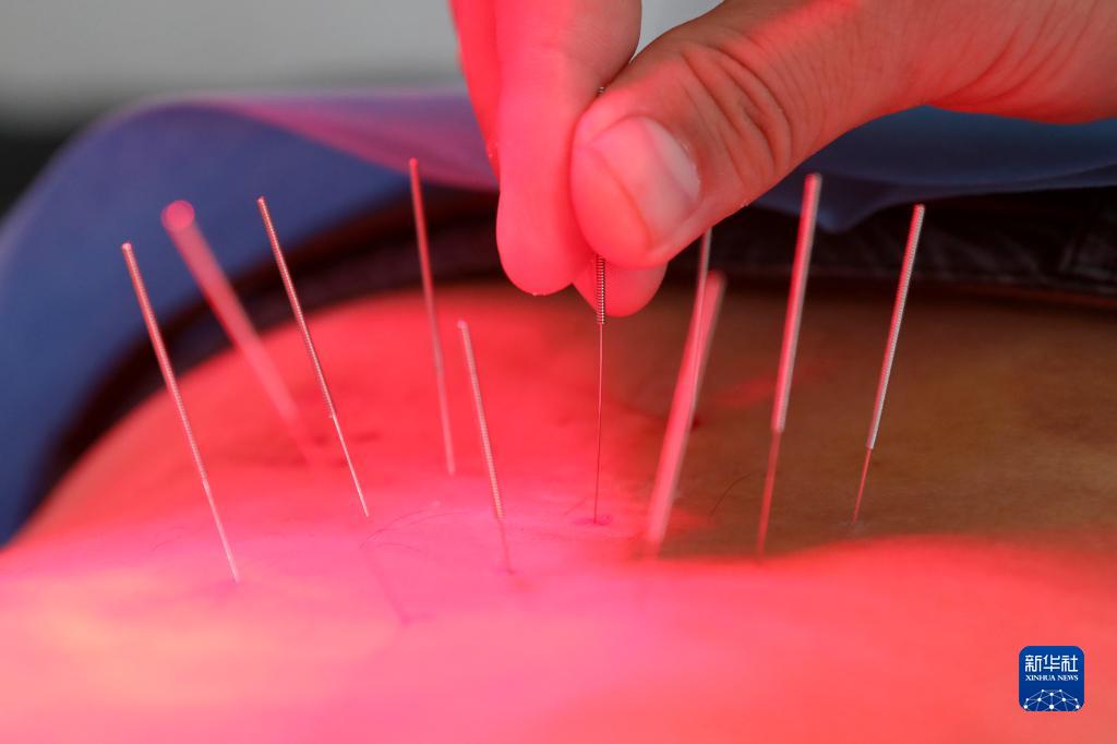 8月19日,河南省焦作市温县中医院医生为患者针灸。