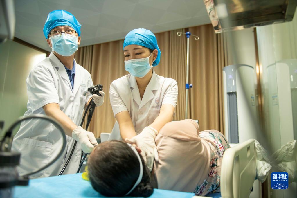 8月19日,在湖南省永州市道县新区医院,医生为患者做胃镜检查。