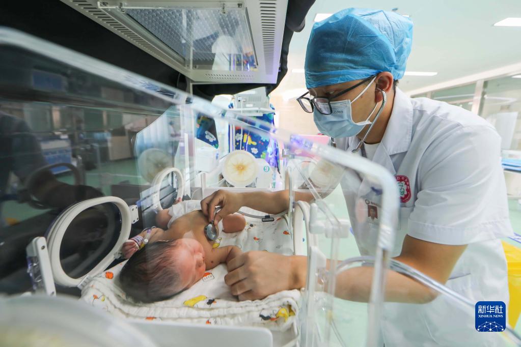 8月19日,医生在贵州省黔东南苗族侗族自治州岑巩县妇幼保健院新生儿科工作。