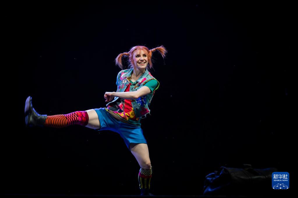 8月18日,芬兰国家芭蕾舞团在芬兰赫尔辛基街头为观众表演《长袜子皮皮》。