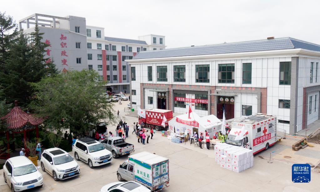 8月19日拍摄的大通一中临时安置点(无人机照片)。