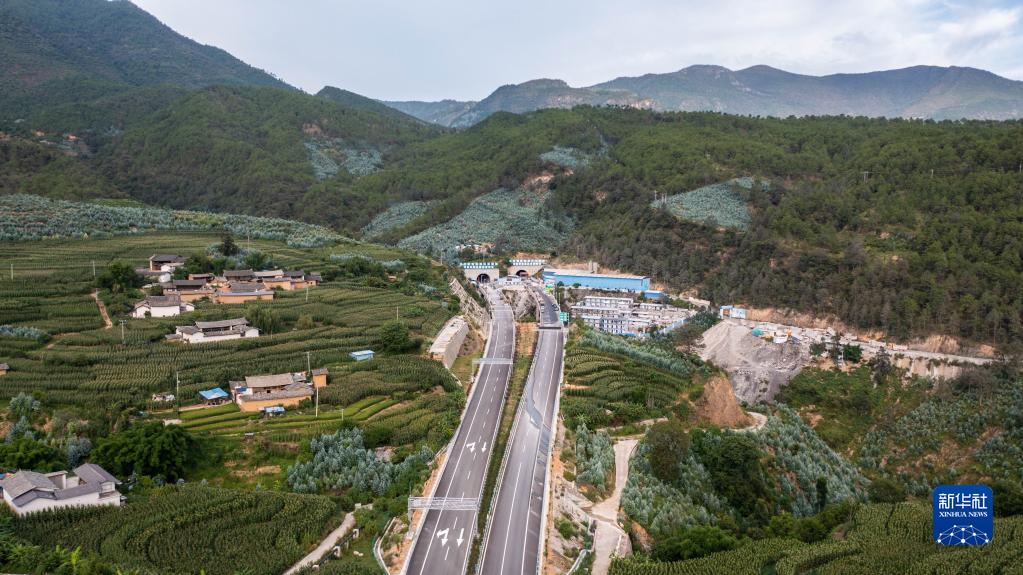 8月19日拍摄的华丽高速营盘山隧道洞口一景(无人机照片)。