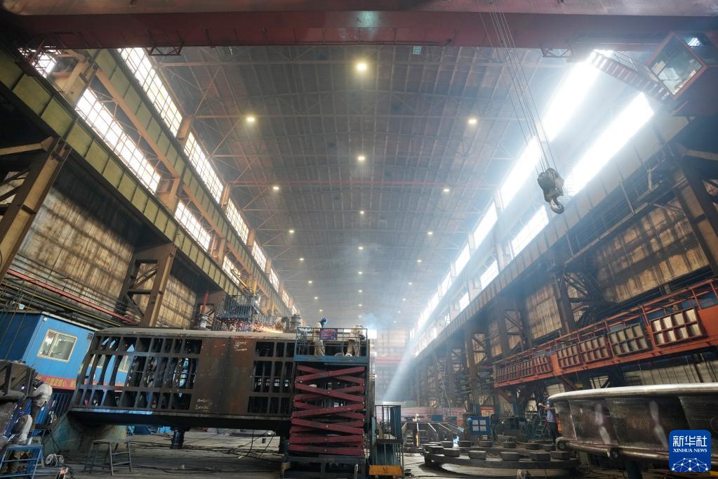 8月19日,在哈电集团哈尔滨电机厂有限责任公司的车间,工人在生产作业。新华社记者 王建威 摄