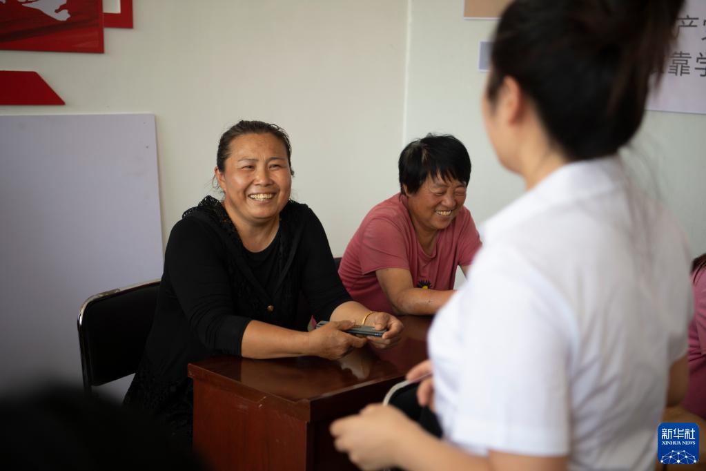 在任村乡东贾村,村民和硕士宣讲团成员李昕瑜沟通(8月19日摄)。