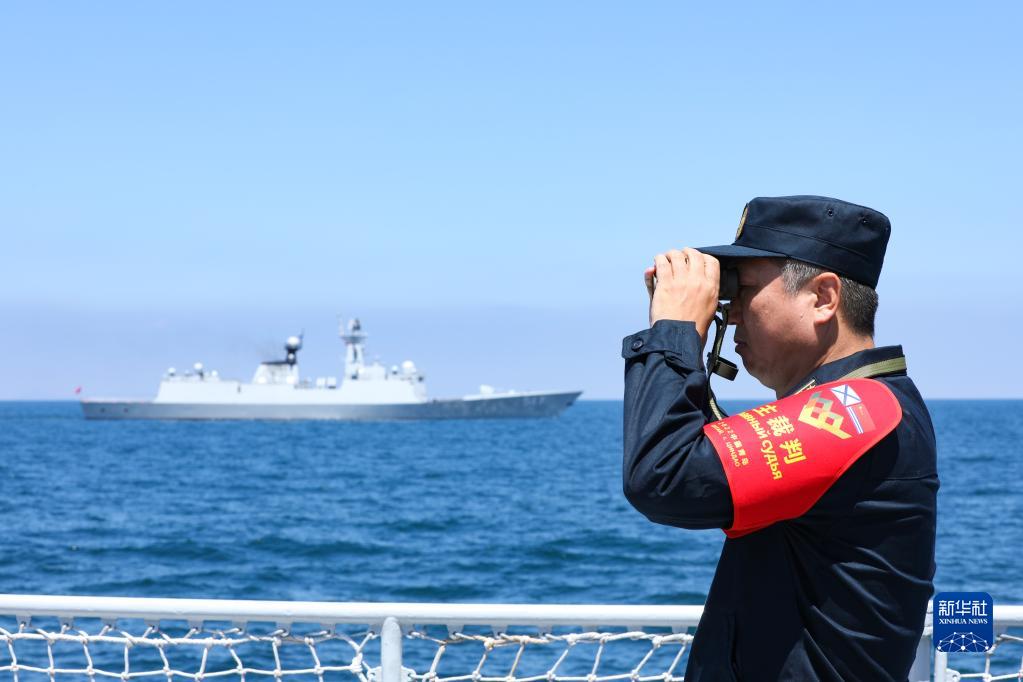 8月17日至20日,“国际军事比赛-2022”“海洋之杯”比赛在山东青岛附近海域进行。这是裁判对比赛情况进行目视观察(8月17日摄)。新华社发(于清正 摄)
