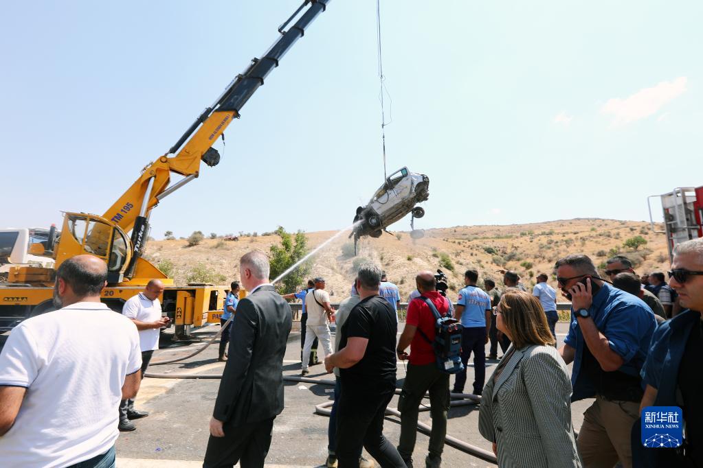 这是8月20日在土耳其加济安泰普省拍摄的交通事故现场。
