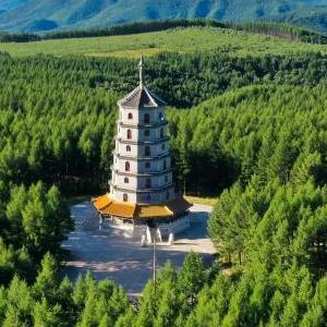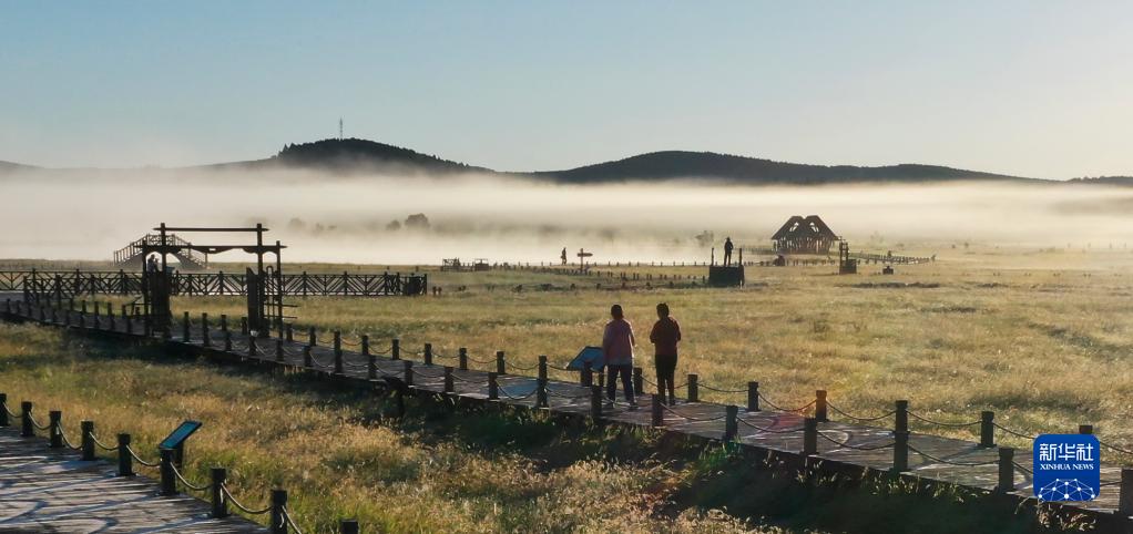 8月20日,游客在塞罕坝国家森林公园游玩(无人机照片)。