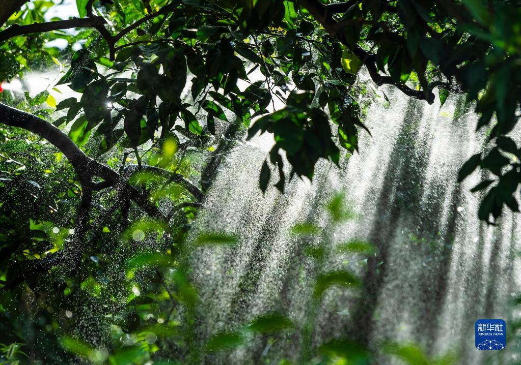 秭归县泄滩乡陈家湾村架设的喷灌设施(8月13日摄)。