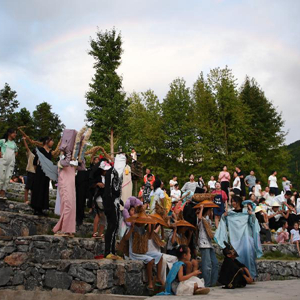 今年7月,附近村庄和邻近县市的70多个孩子参加了大元社的暑期活动,在完成基本学业之余,学习手工、绘画、音乐等艺术相关课程。8月20日傍晚,孩子和村民们一起举办的艺术节便是“结业典礼”。为了准备艺术节的重头戏——沉浸式戏剧,孩子们自己打磨剧本、设计服装、调试灯光,40多个孩子穿着自己设计的服装,期待着属于他们的乡村艺术节。