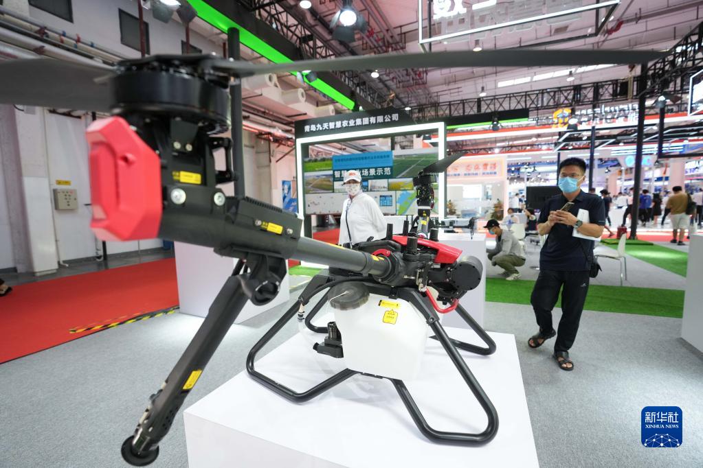 这是在2022世界机器人博览会“机器人+农业”区域展示的一款农业无人机(8月19日摄)。