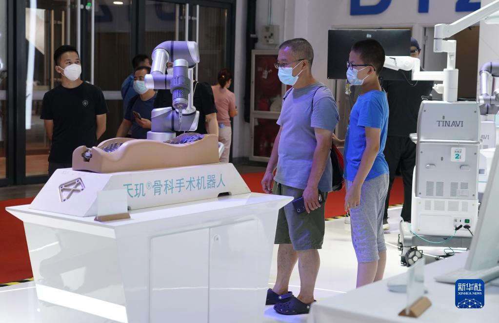 这是在2022世界机器人博览会“机器人+医疗”展区现场拍摄的骨科手术机器人(8月20日摄)。