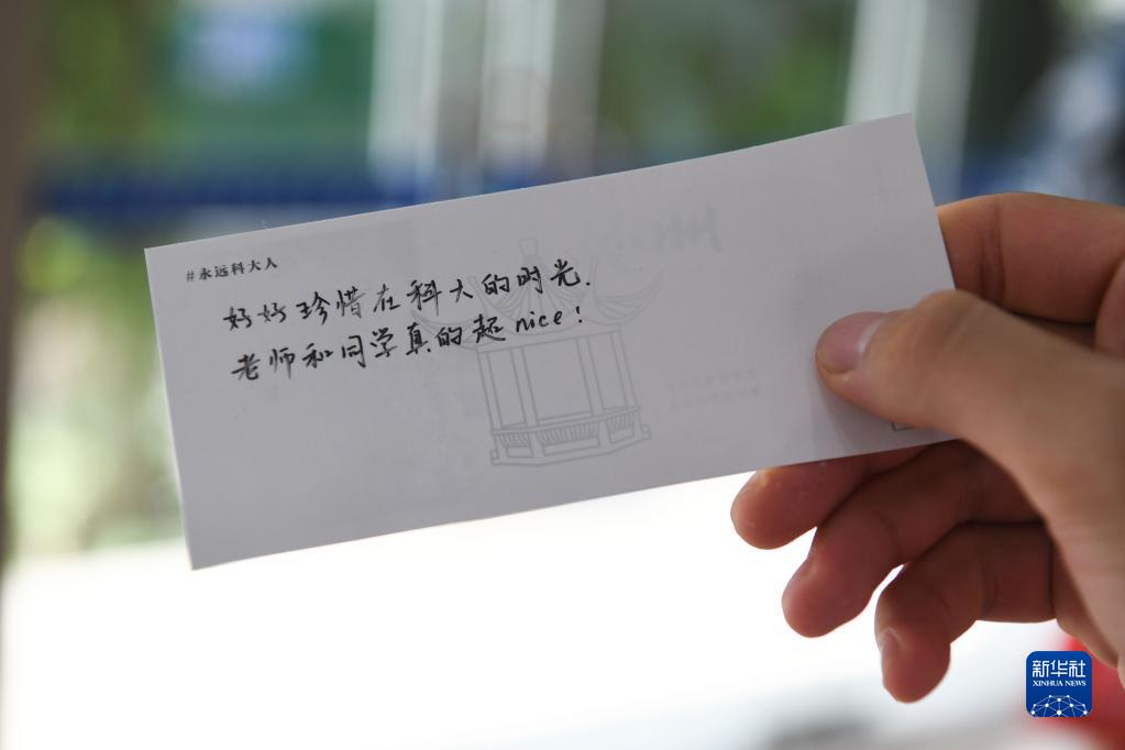 8月21日,一名2022级本科新生领取了写有2022届毕业生祝福的明信片。