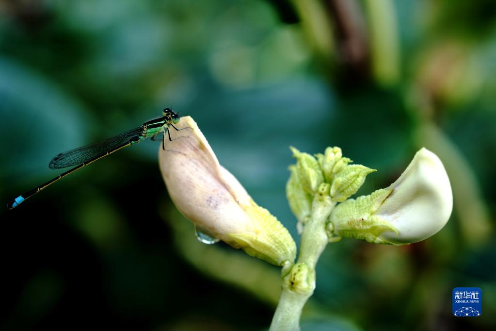 8月21日在上海松江区洞泾镇一个家庭农场菜地里拍摄的豆娘。