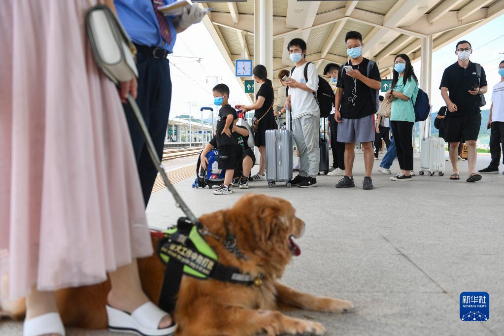 8月19日,在河源东站站台,满悦陪伴张莉等车。