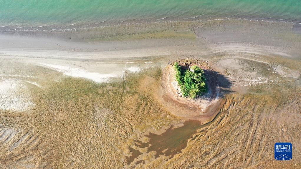 这是长江扬州段裸露的滩涂(8月22日摄,无人机照片)。