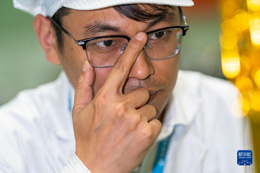2022年8月3日,在长光卫星技术股份有限公司总装车间,项目总师陈茂胜踏查“吉林一号”高分03卫星生产工作。