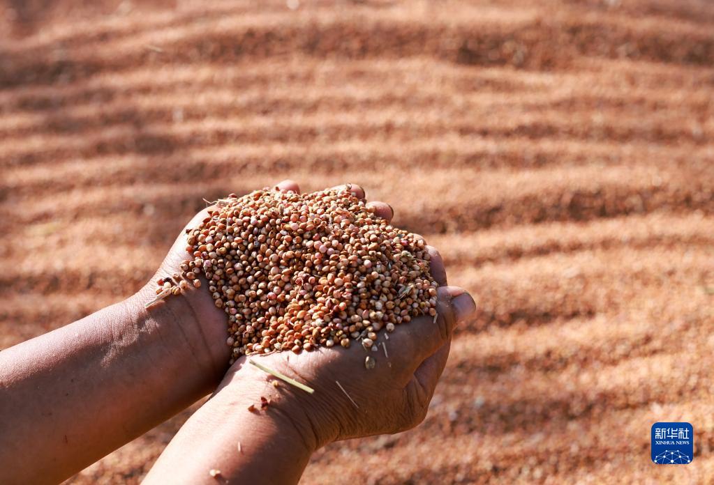 8月22日,在贵州省遵义市新蒲新区礼仪街道民主村,村民展示刚刚收获的高粱。
