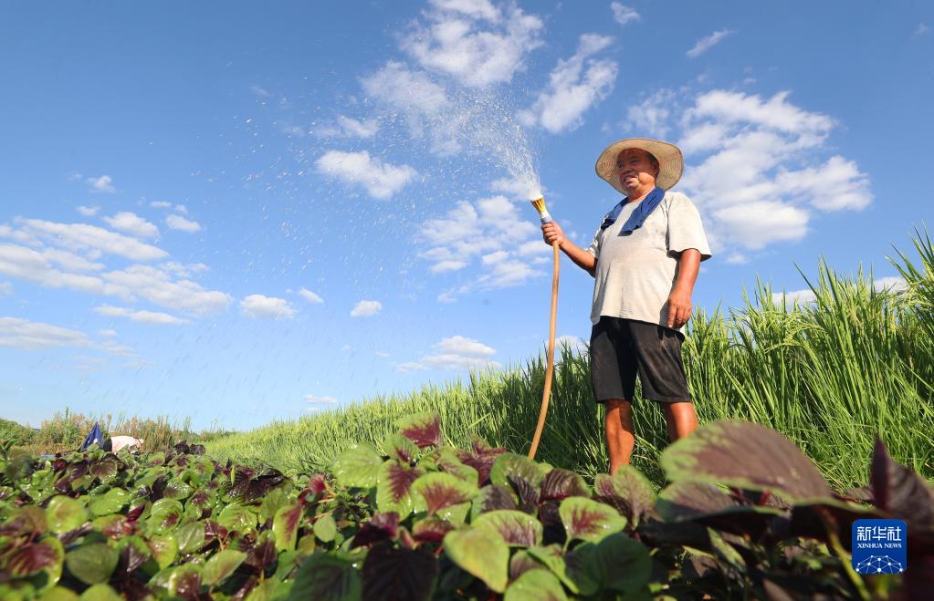 8月22日,湖南省衡阳市石鼓区角山镇村民在灌溉菜地。