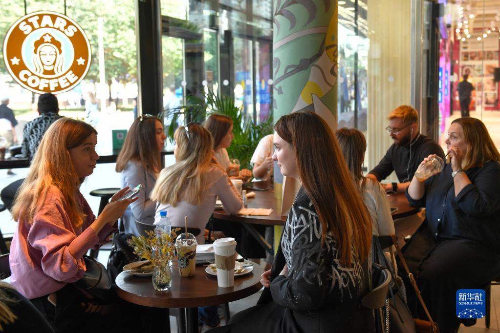 8月22日,人们在俄罗斯莫斯科一家“星咖啡”门店用餐。