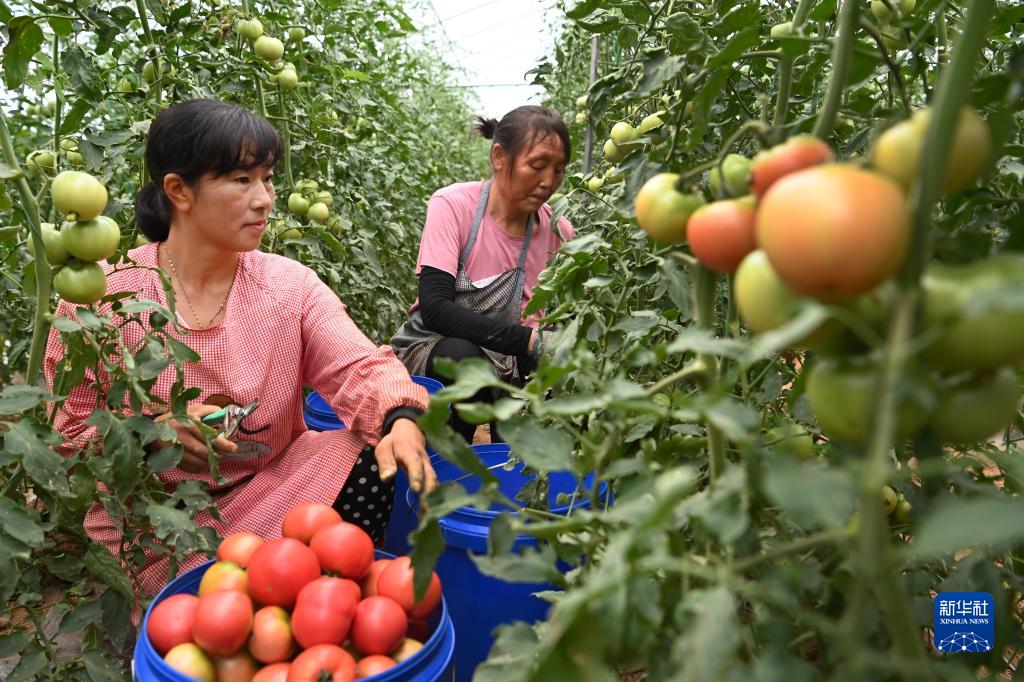 8月23日,洛南县麻坪镇三兴村村民在大棚里采摘西红杮。