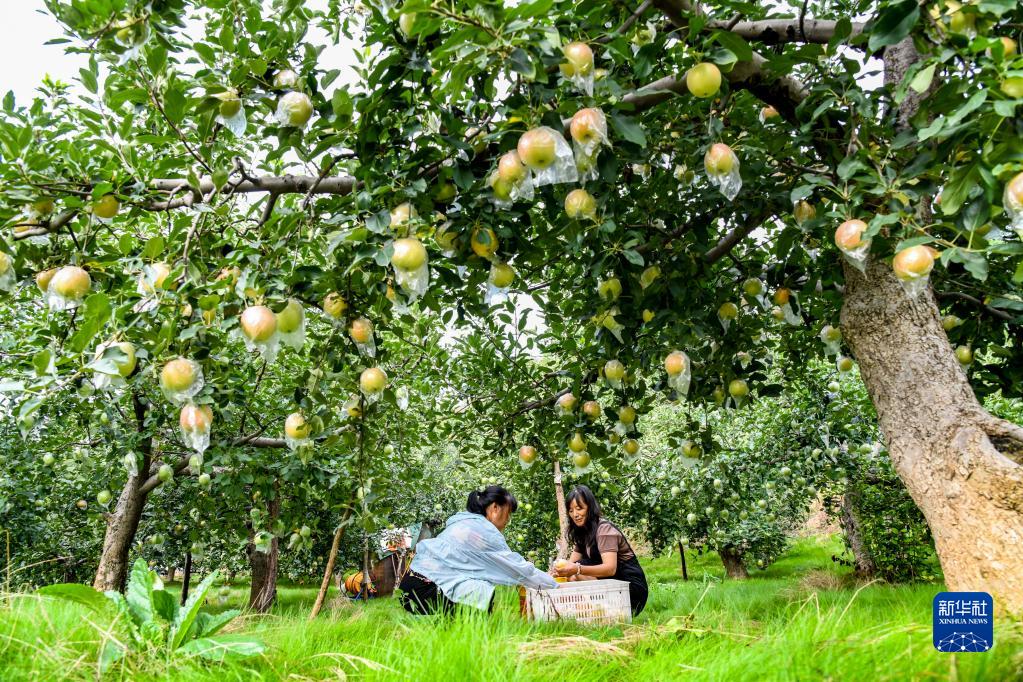 8月23日,河南省济源市邵原镇史家腰村农民在采摘富硒苹果。