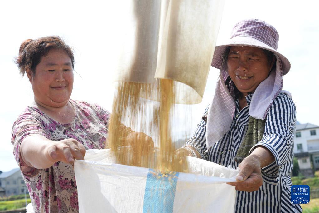 连日来,贵州省绥阳县旺草镇种植的水稻陆续进入成熟收割期,当地村民抢抓农时收割水稻,确保粮食颗粒归仓。