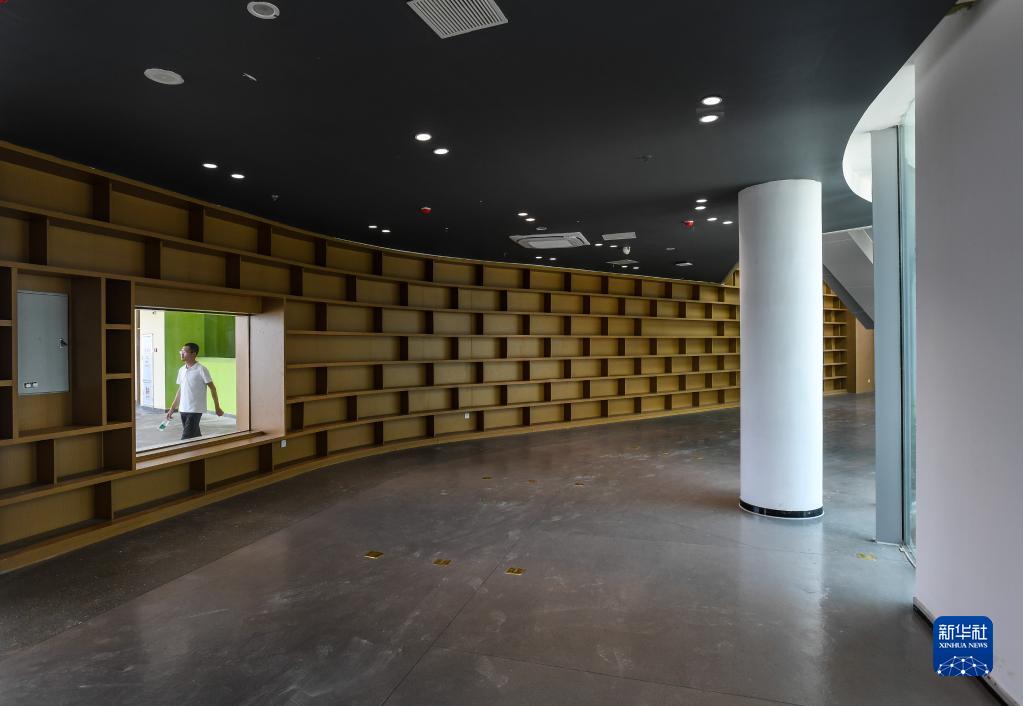 广州南沙民心港人子弟学校图书馆内景(8月23日摄)。