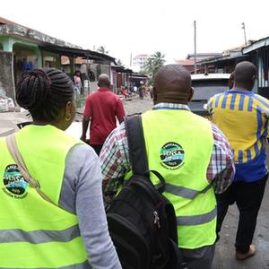 8月23日,人口普查员走在坦桑尼亚达累斯萨拉姆的街道上。
