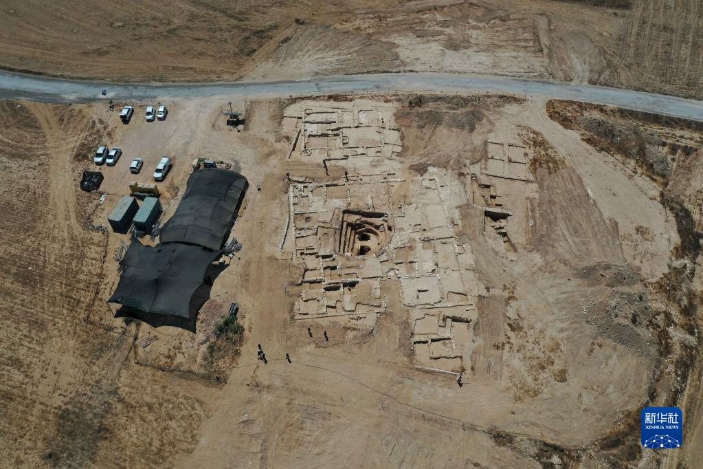 这是8月23日拍摄的以色列南部内盖夫沙漠地区发掘出的古代“豪宅”遗址(无人机照片)。新华社发(吉尔·科恩·马根摄)