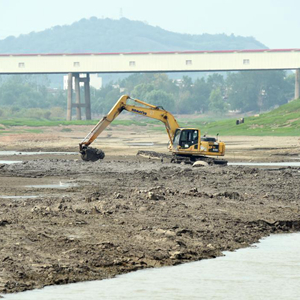 8月23日,在安徽省芜湖市繁昌区荻港镇,水上挖掘机在河道里进行清淤作业,疏通引水渠道。