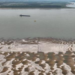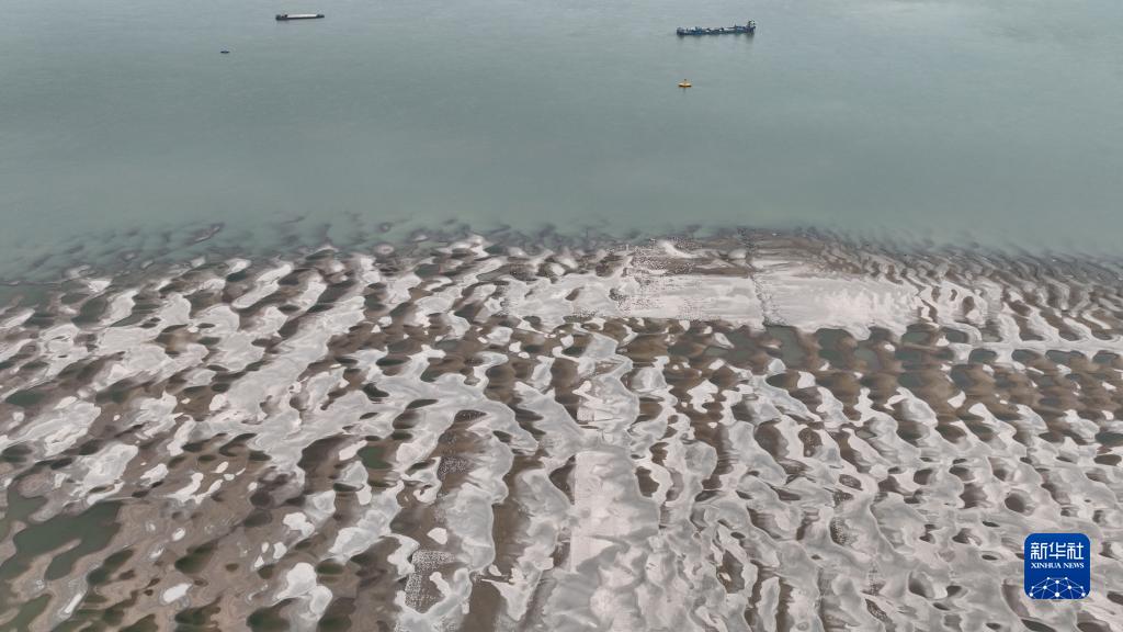 连日来,受降水偏少及持续高温影响,长江九江段水位降低,出现“汛期反枯”的现象。在九江市瑞昌市码头镇和柴桑区城子镇,长江裸露出部分滩涂。