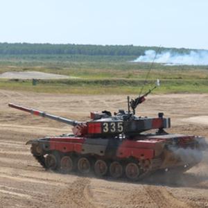 8月24日,在俄罗斯莫斯科州阿拉比诺靶场,中国参赛队96B坦克在比赛中。