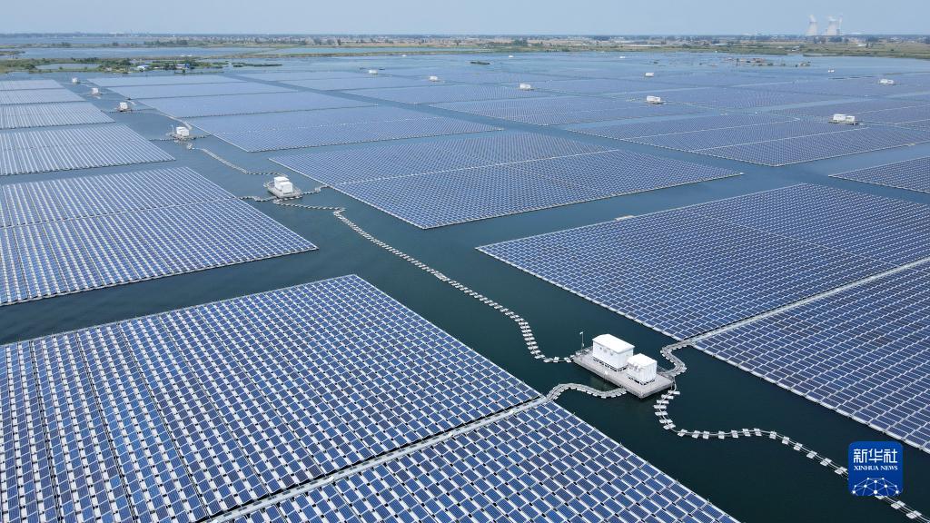 8月25日拍摄的颍上县毛圩水上光伏电站(无人机照片)。