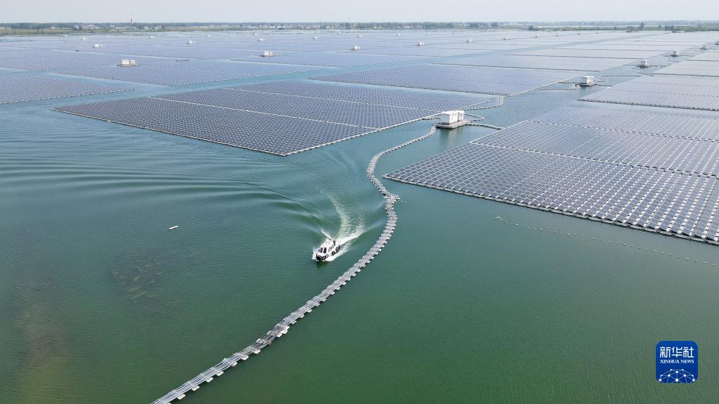 8月25日拍摄的颍上县毛圩水上光伏电站(无人机照片)。