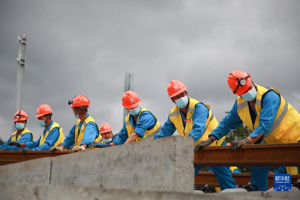 8月26日,中铁一局建设者们在进行铺轨施工。