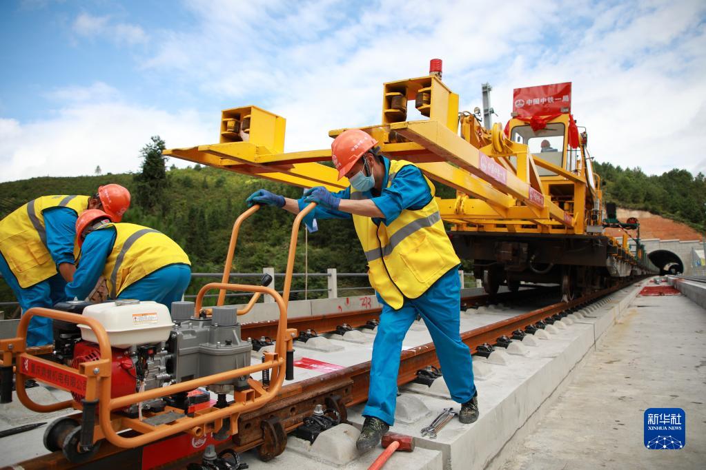 8月26日,中铁一局建设者们在进行铺轨施工。
