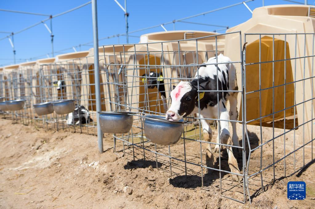 这是8月25日拍摄的位于呼和浩特市的伊利敕勒川精品奶源基地的牛犊。新华社记者 李志鹏 摄