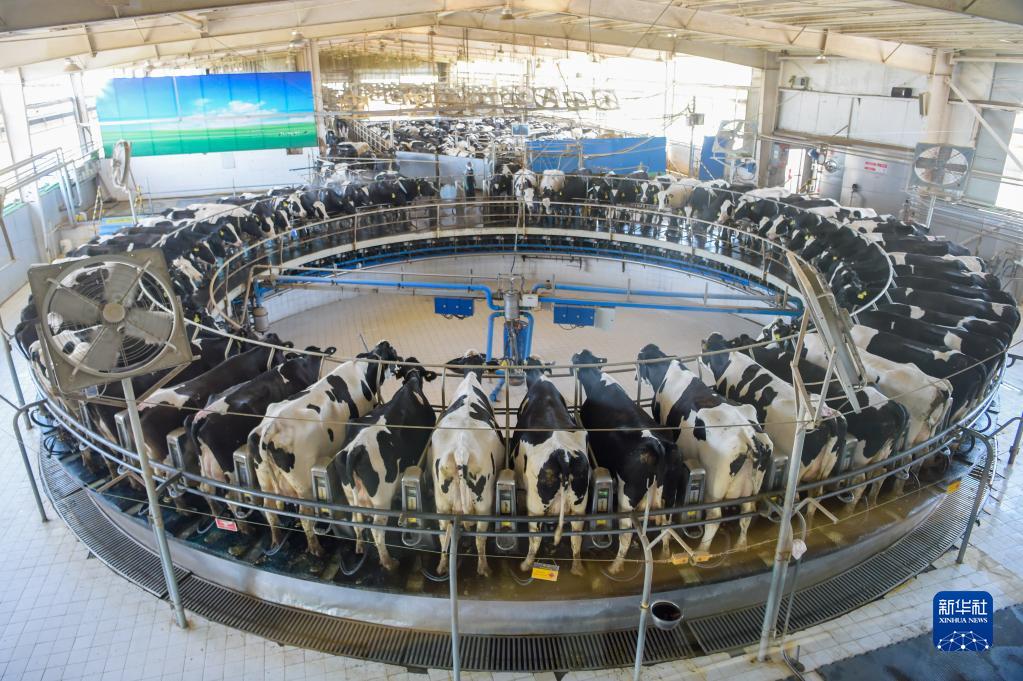 这是8月25日拍摄的位于呼和浩特市的伊利敕勒川精品奶源基地的奶牛。新华社记者 李志鹏 摄