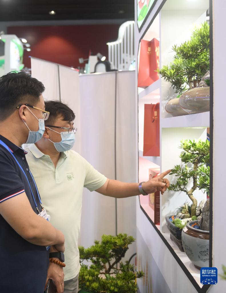 8月26日,客商在广州博览会乡村振兴展上参观选购盆景。