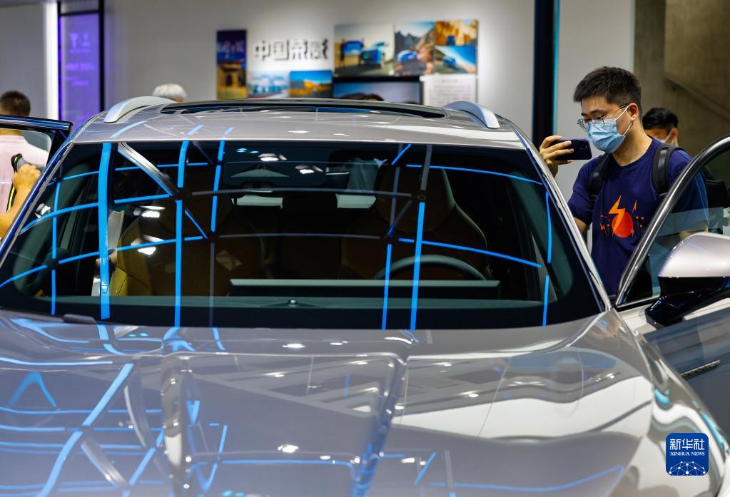 8月26日,参观者在第二十五届成都国际汽车展览会的上汽荣威展台拍摄。
